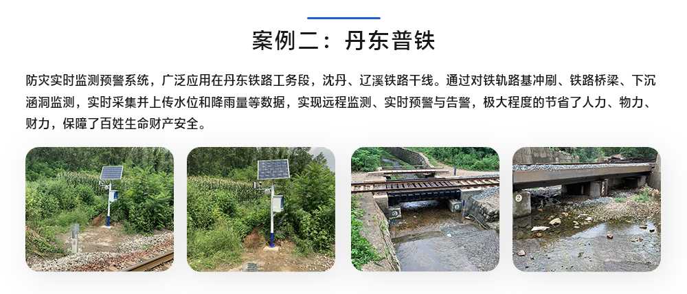 防灾实时监测预警系统对雨水带来的灾害实时监测与防控,主要应用在涵洞、隧道、桥梁、河道等场景,对洪水带来的灾害进行实时监测、预警、灾害的防御。
